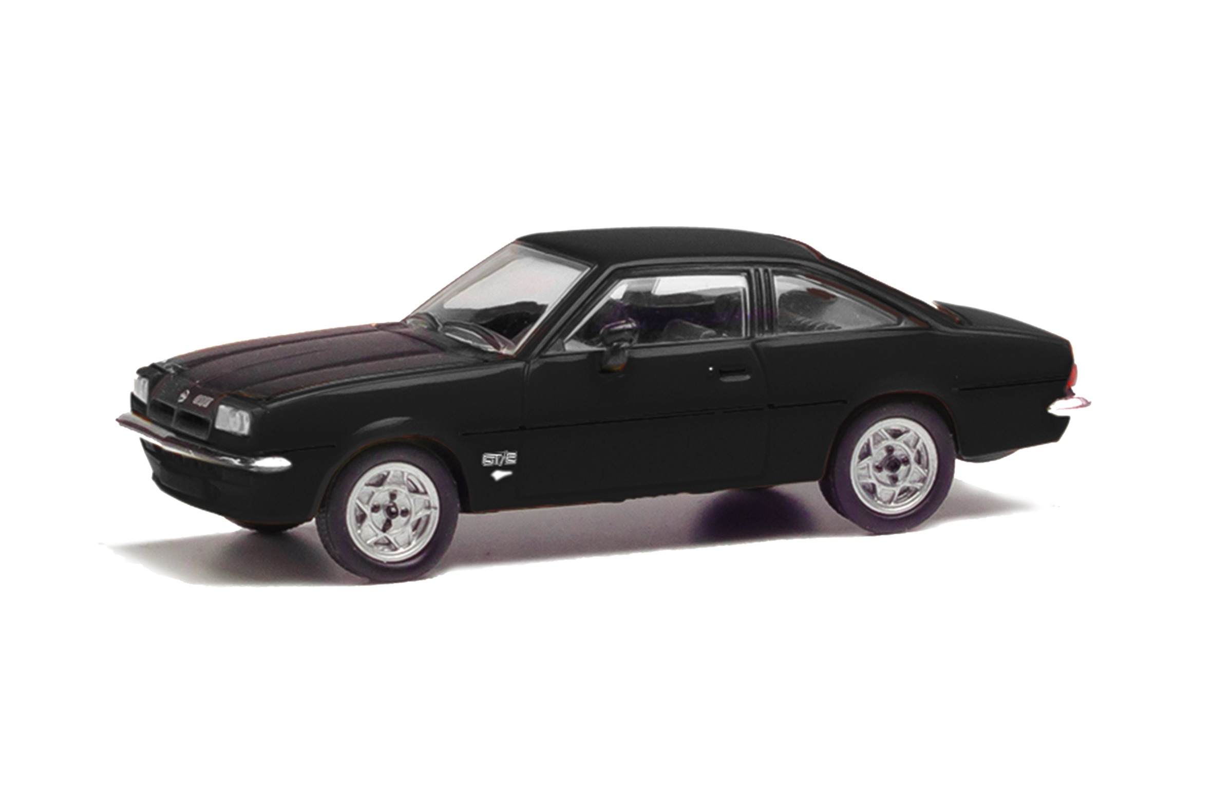 Im Jahr 1975 lief der letzte legendäre Opel Manta A vom Band. Sein Nachfolger war der Manta B, der noch im gleichen Jahr noch vorgestellt wurde. Die Motorisierungen reichten von 55 PS bis zu 105 PS im GT/E. Das Modell erscheint in schwarz.