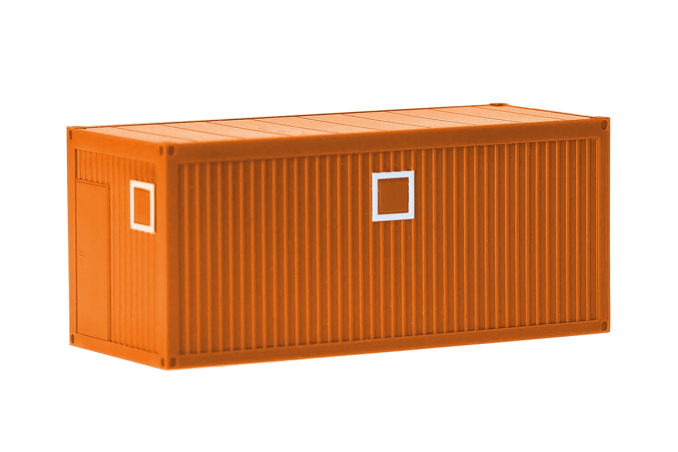 Das Set der 20ft Büro- und Baucontainer erscheint nun (nach Betongrau 053600, Rapsgelb 053600-002und Enzianblau 053600-003) in kommunalorange.