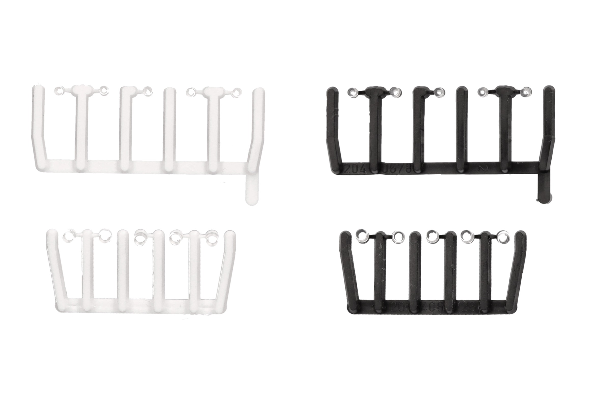 In neuer Sortierung erscheint das Zubehör der Signallichter – hier transparent, bzw. glasklar. Je 40 kleine und große Signallichter können mit ja 20 schwarzen und weißen Sockeln kombiniert werden.