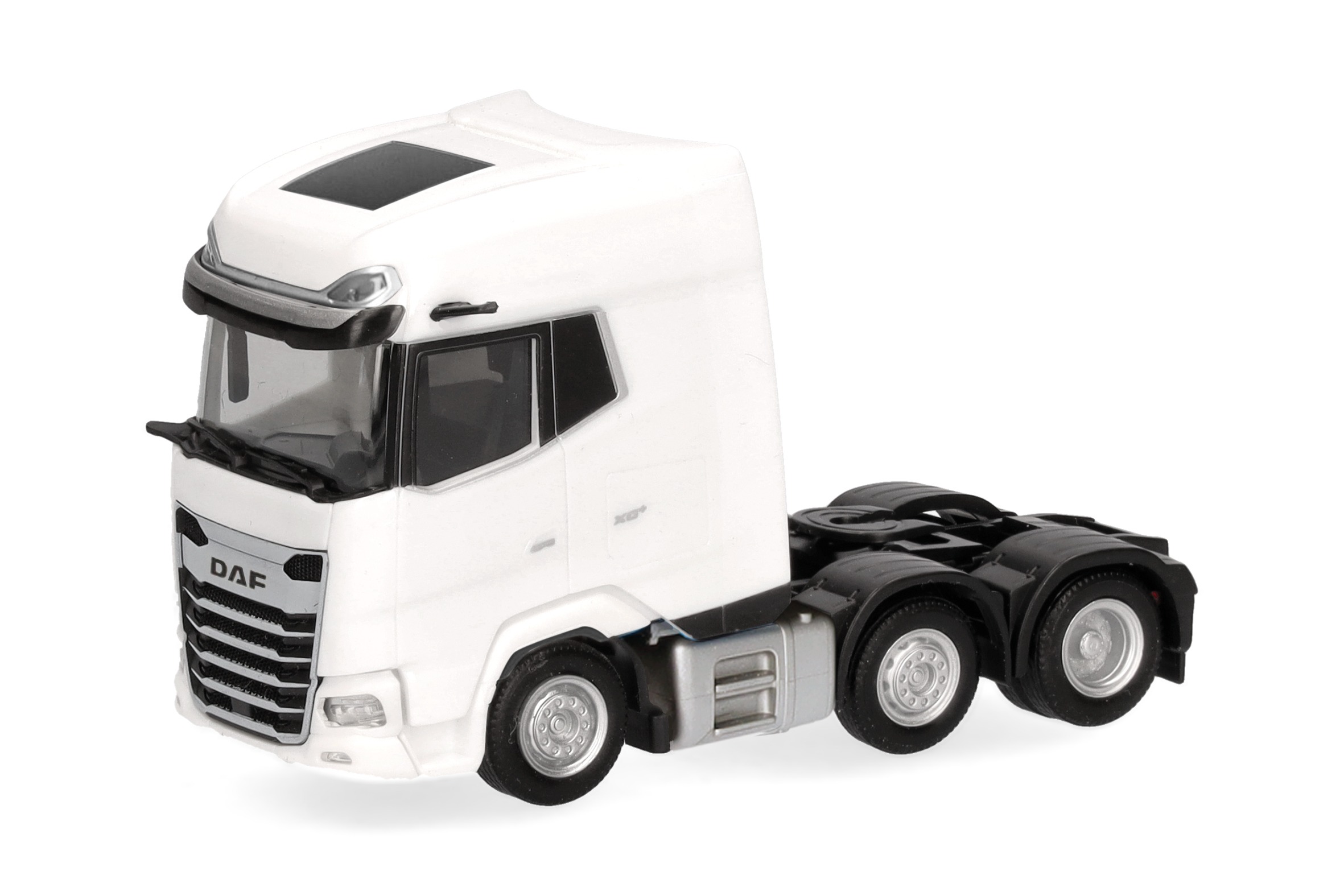 FORMNEUHEIT ! Knapp zwei Jahre nachdem Herpa die DXF XG/XG+ Baureihe eingeführt hat ist nun auch die 3achsige Fahrgestellvariante in Form des 6×2-Antriebs verfügbar. Während die DAF XG Zugmaschine (318983) in verkehrsrot umgesetzt wird, erscheint die XG+ Kabine zunächst in weiß.