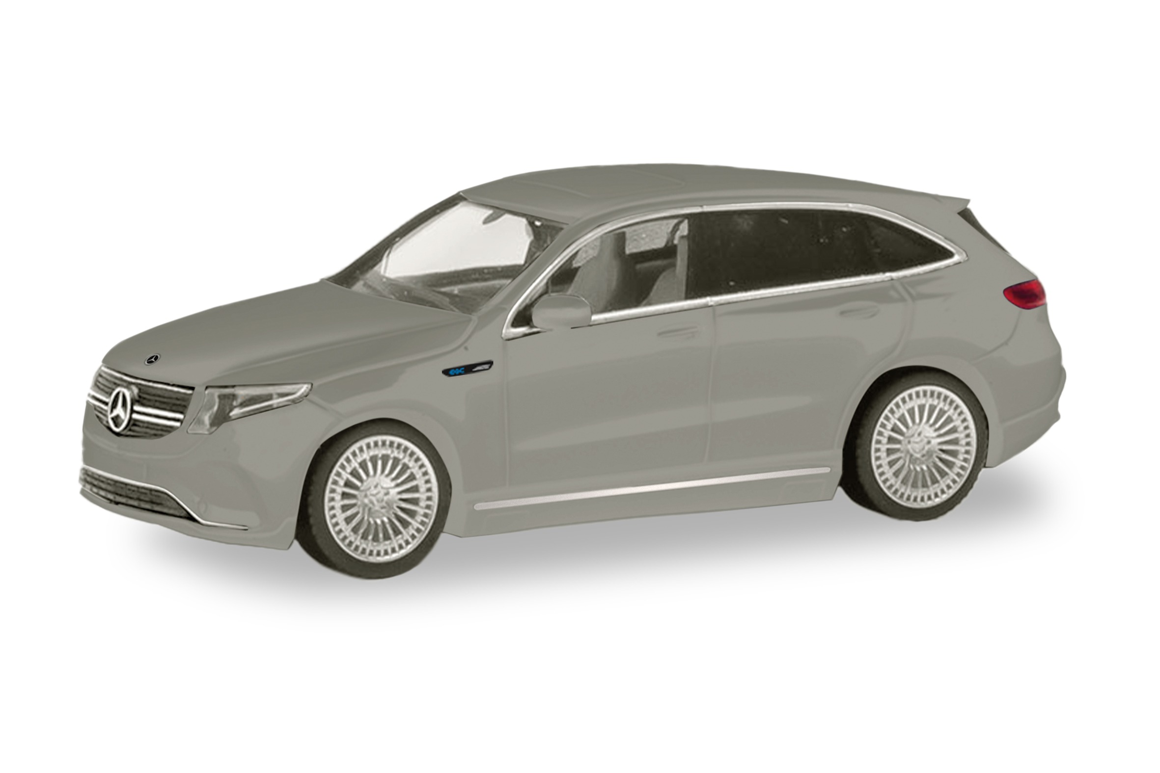 Der Mercedes-Benz EQC, ein voll elektrisch betriebenes Fahrzeug, ist beliebt unter den aktuelleren Fahrzeugen im Herpa-Sortiment. Das Fahrzeug ist in wundervollem signalgrau umgesetzt und detailreich 87-fach verkleinert.