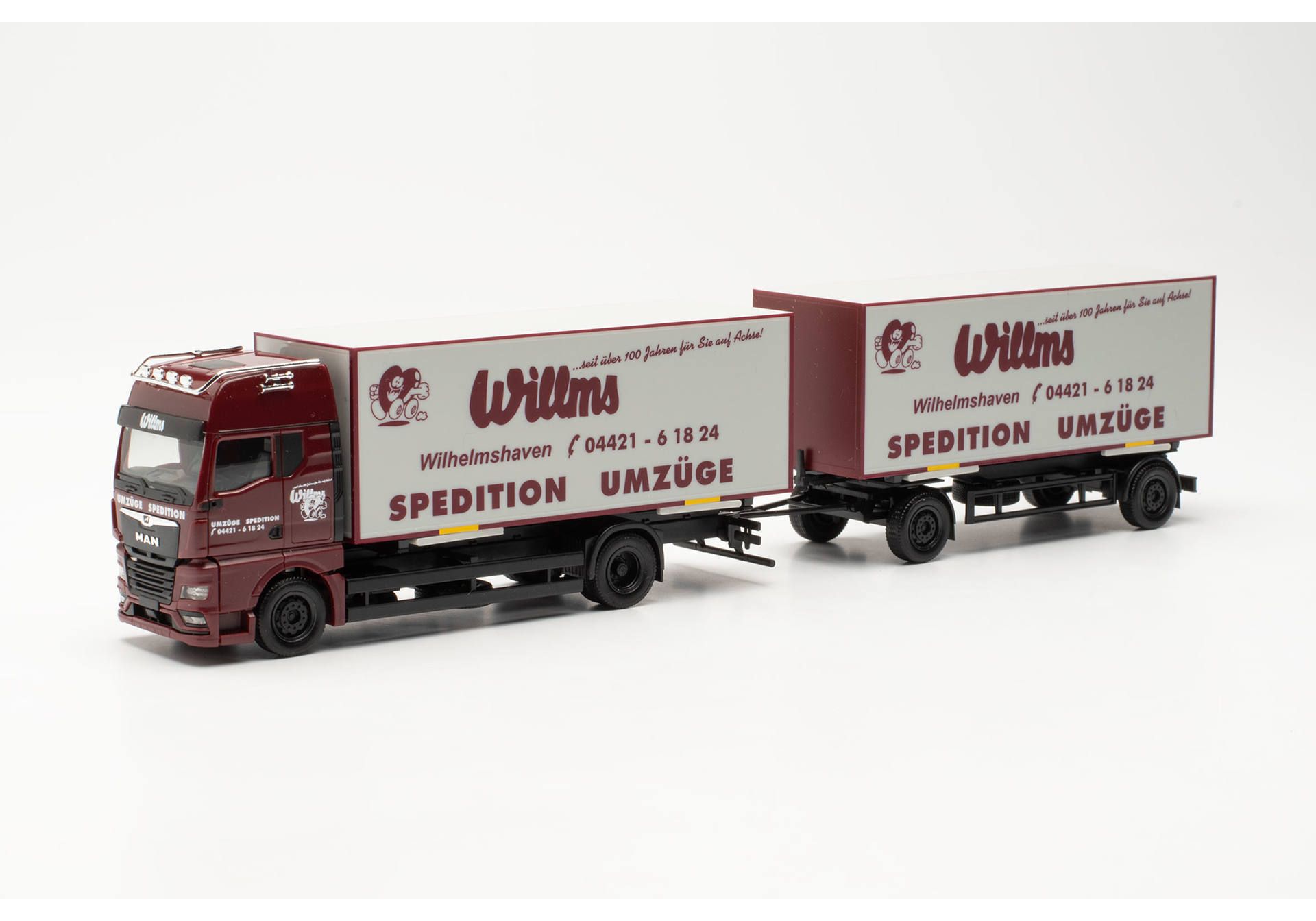 herpa 953511 MAN TGX GX 7,45m Wechselkoffer-Hängerzug Willms 1:87 NEU + OVP