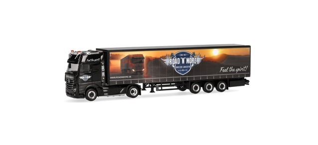 herpa 958851 MB Actros L Gigaspace Gardinenplanen-Sattelzug RNM-Showtruck / Hintzen Logistik 1:87 NEU + OVP