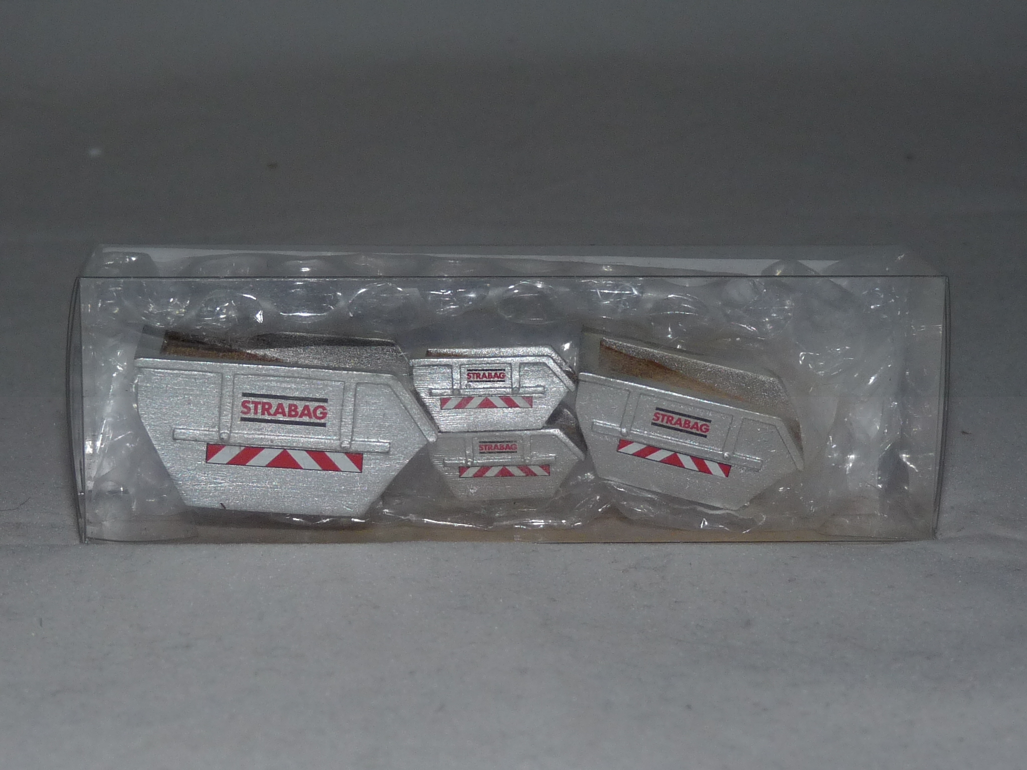Loewe 2430 Set aus 4 Absetzmulden STRABAG mit Bausand 1:87 NEU + OVP