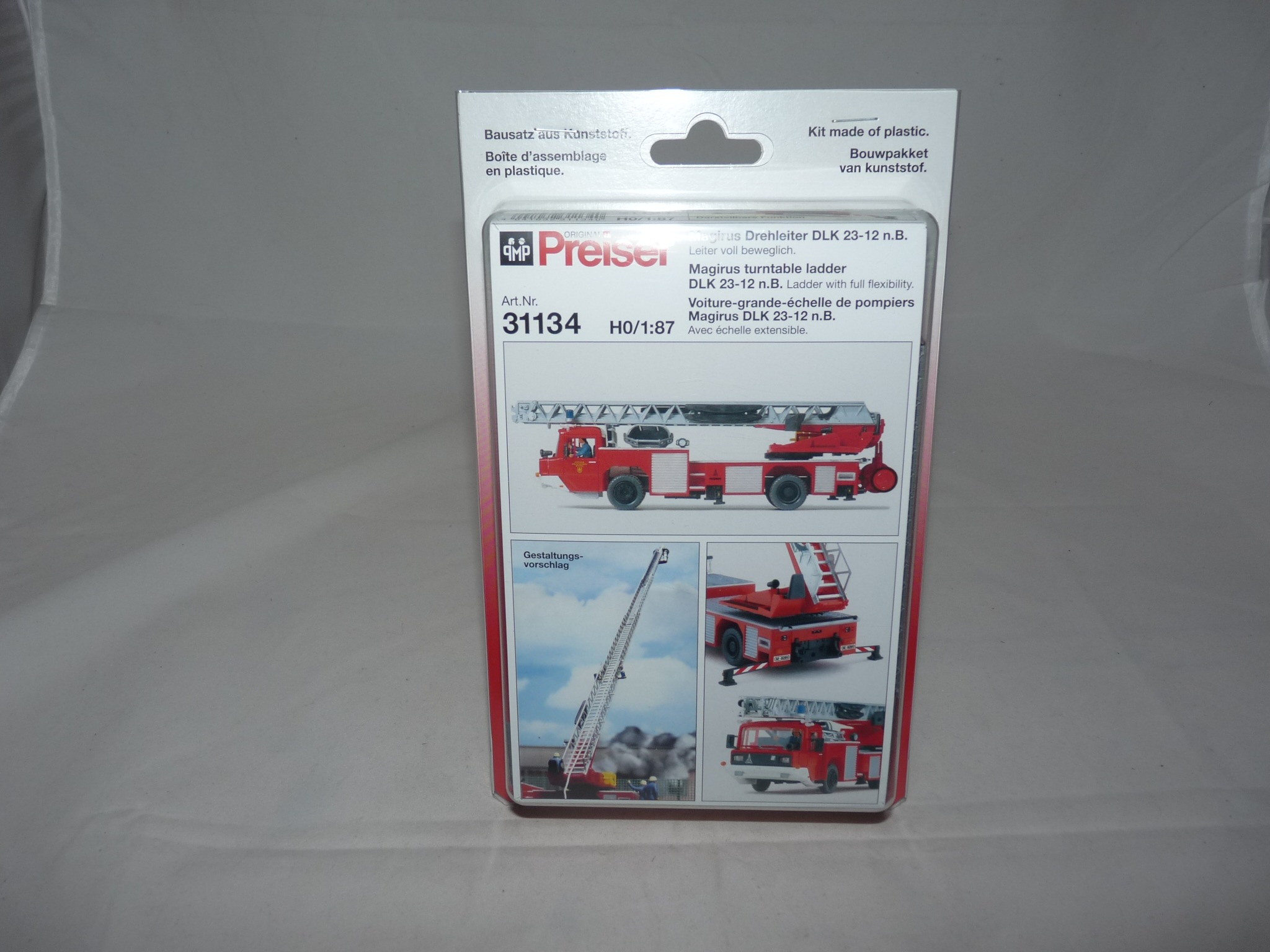 Preiser 31134 Magirus Drehleiter DLK 23-12 n.B. Leiter voll beweglich Feuerwehr Bausatz 1:87 / H0 NEU + OVP