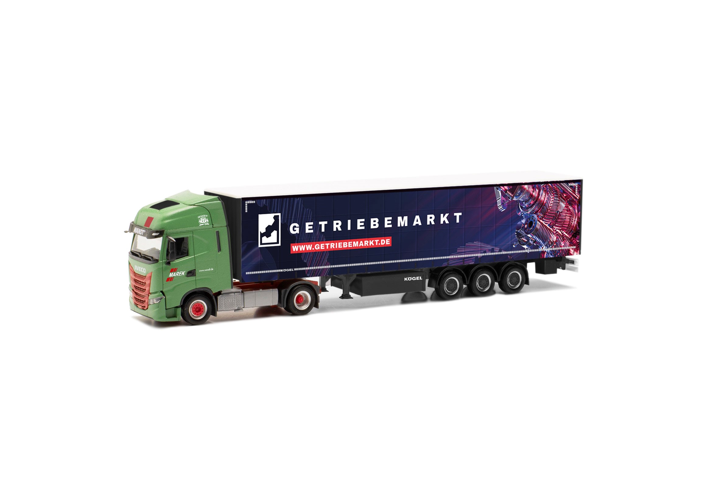 herpa 953900 Iveco S-Way Gardinenplanen-Sattelzug Wandt / Getriebemarkt 1:87 NEU + OVP