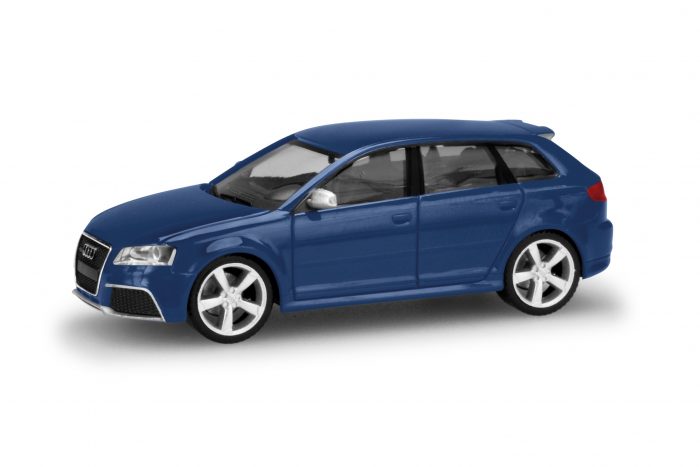 Die sportliche Variante des Audi A3, der RS3 Sportback, ergänzt in der Farbe sepangblau perleffekt das PKW-Programm bei Herpa.