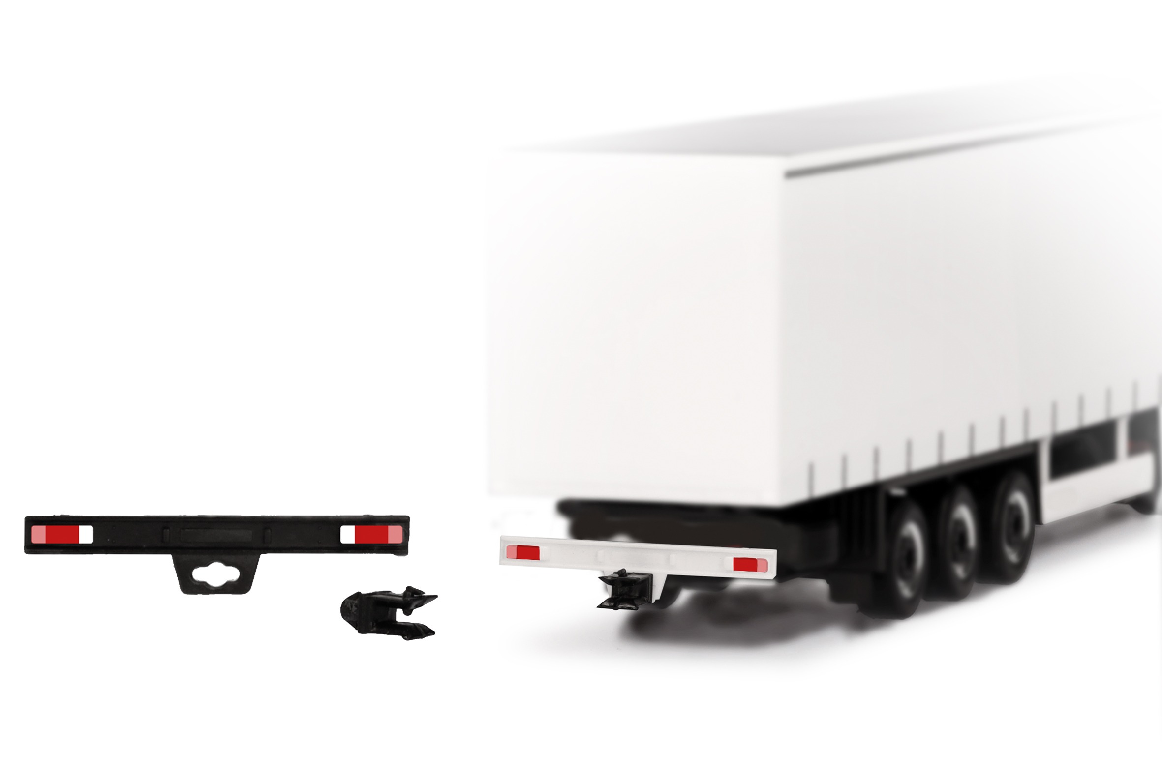 Wer einen Roadtrain (ECO DUO) bauen möchte, kann dies nun relativ einfach mit diesem Set machen. Je zwei weiße und schwarze Heckstoßstangen mit bedruckten Rückleuchten, sowie die nötigen Anhängekupplungen ermöglichen dem Bastler einen Dolly anzukuppeln, der dann wiederrum einen weiteren Sattelauflieger zieht. Natürlich kann mann hier auch einen normalen Drehschemelanhänger direkt ankuppeln.