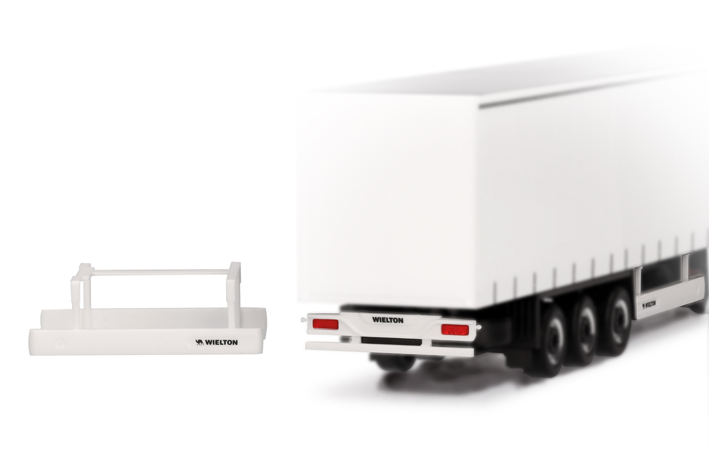 Vor etwas mehr als einem halben Jahr wurden die neuen Anbauteile nach WIELTON Vorbild erstmals umgesetzt (316927, mit 317467 ein weiteres). Das Set beinhaltet je 4 Stück Heckstoßstange und seitlichen Unterfahrschutz (jeweils in weiß) mit entsprechender Bedruckung.