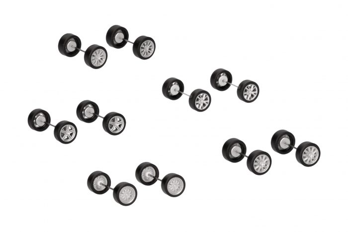 Ein Set mit attraktiven PKW-Sortfelgen für Porsche-Modelle ermöglicht das Umrüsten vorhandener Fahrzeuge nach eigenem Belieben.
