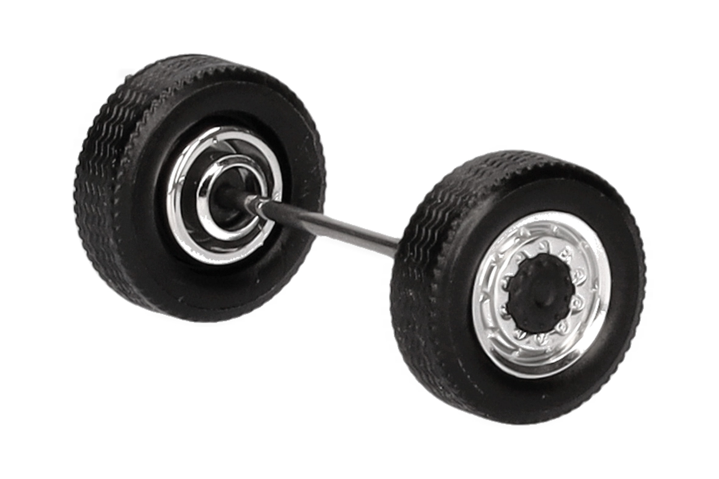 Die besonders edlen Varianten der Baufahrzeugen lassen sich mit diesem Nachrüstsatz nun auch mit zweiteiligen Chromfelgen mit schwarzer Nabe pimpen.