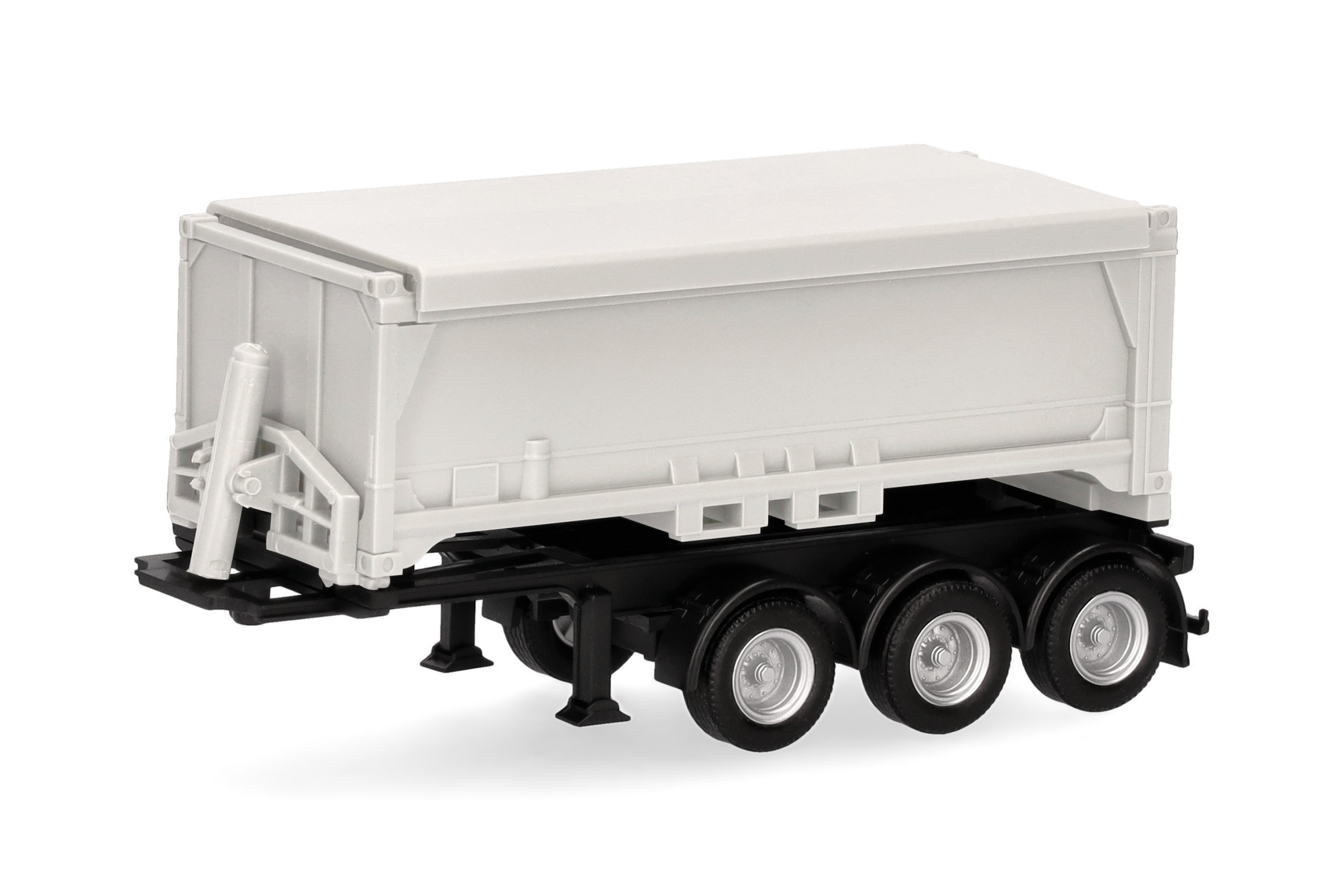 Der Abraumcontainer-Auflieger, bekannt geworden durch die Baustelle Stuttgart21, wird von herpa nun auch in weißer Farbgebung mit schwarzem Chassis zur freien Gestaltung angeboten.