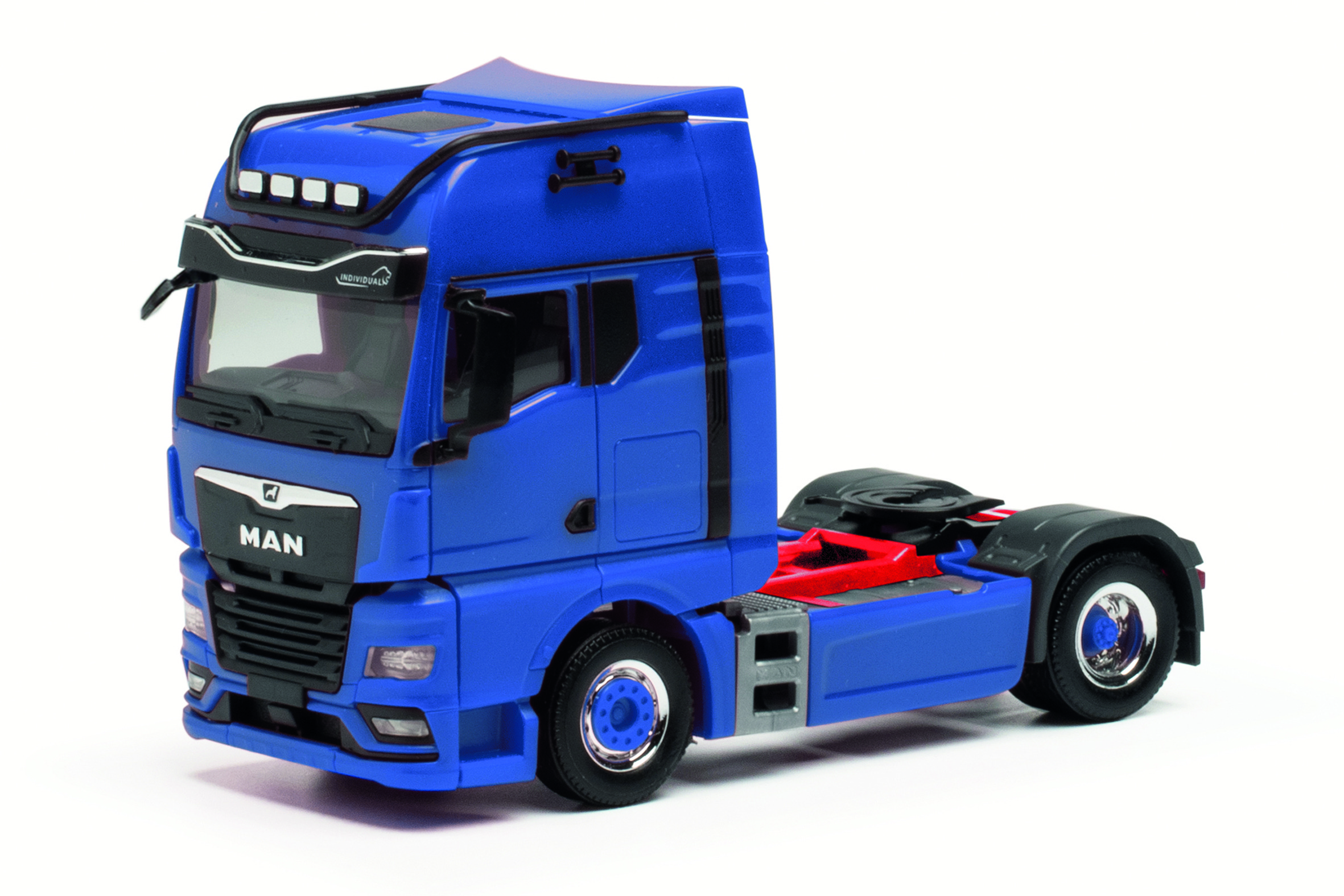 Die Individual-Serie von MAN wird mit dieser Farbvariante fortgesetzt. Mit der speziellen Ausstattungslinie geänderte Sonnenblende (die inzwischen als Standard fungiert), sowie der typische Lampenbügel in Kombination mit zweiteiligen Chromfelgen und seitlichen Fanfaren machen diese Zugmaschine zu einem Highlight, die nun in blau erhältlich ist.