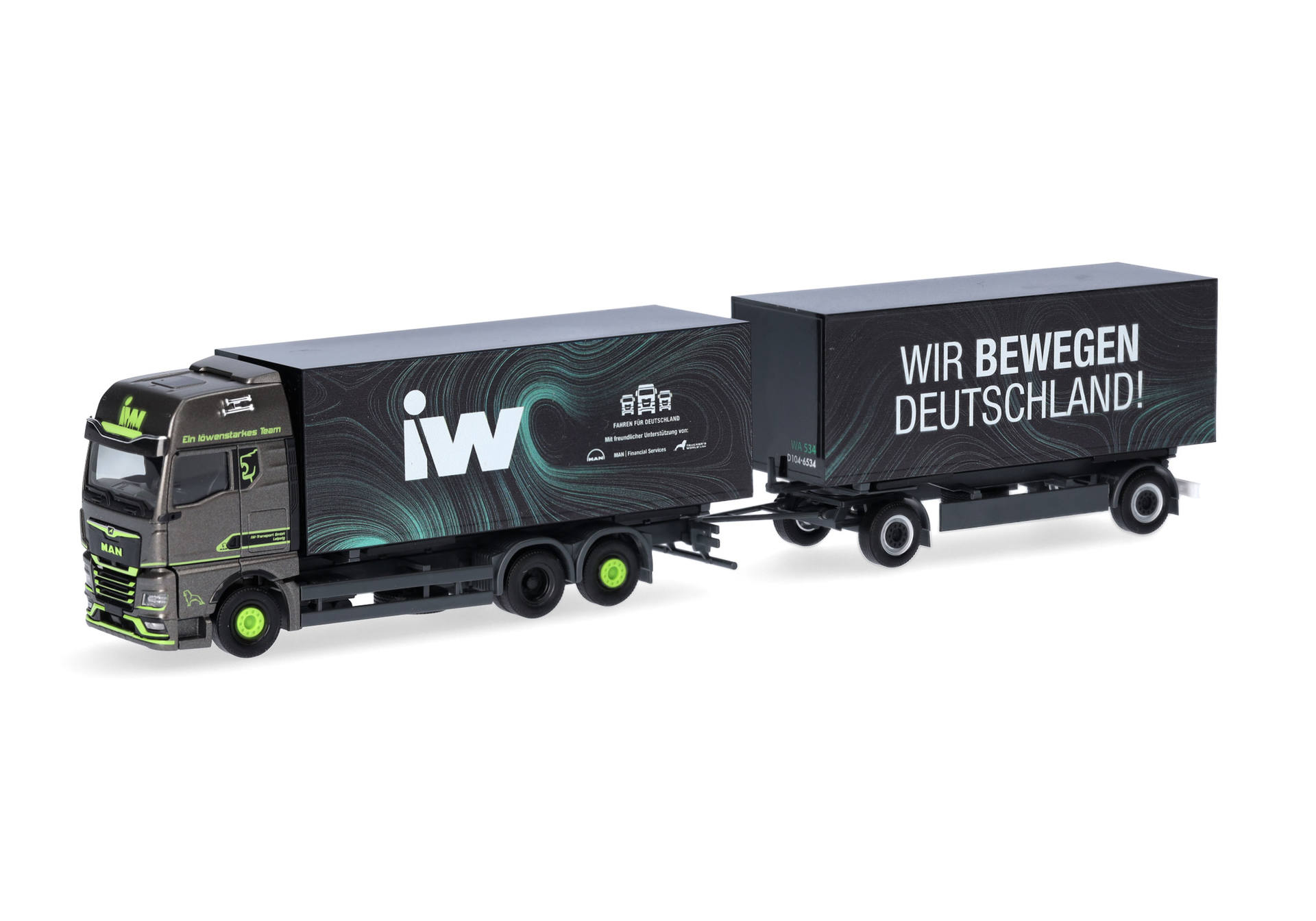 herpa 317160 MAN TGX GX Wechselkoffer-Hängerzug IW / Wir bewegen Deutschland 1:87 NEU + OVP