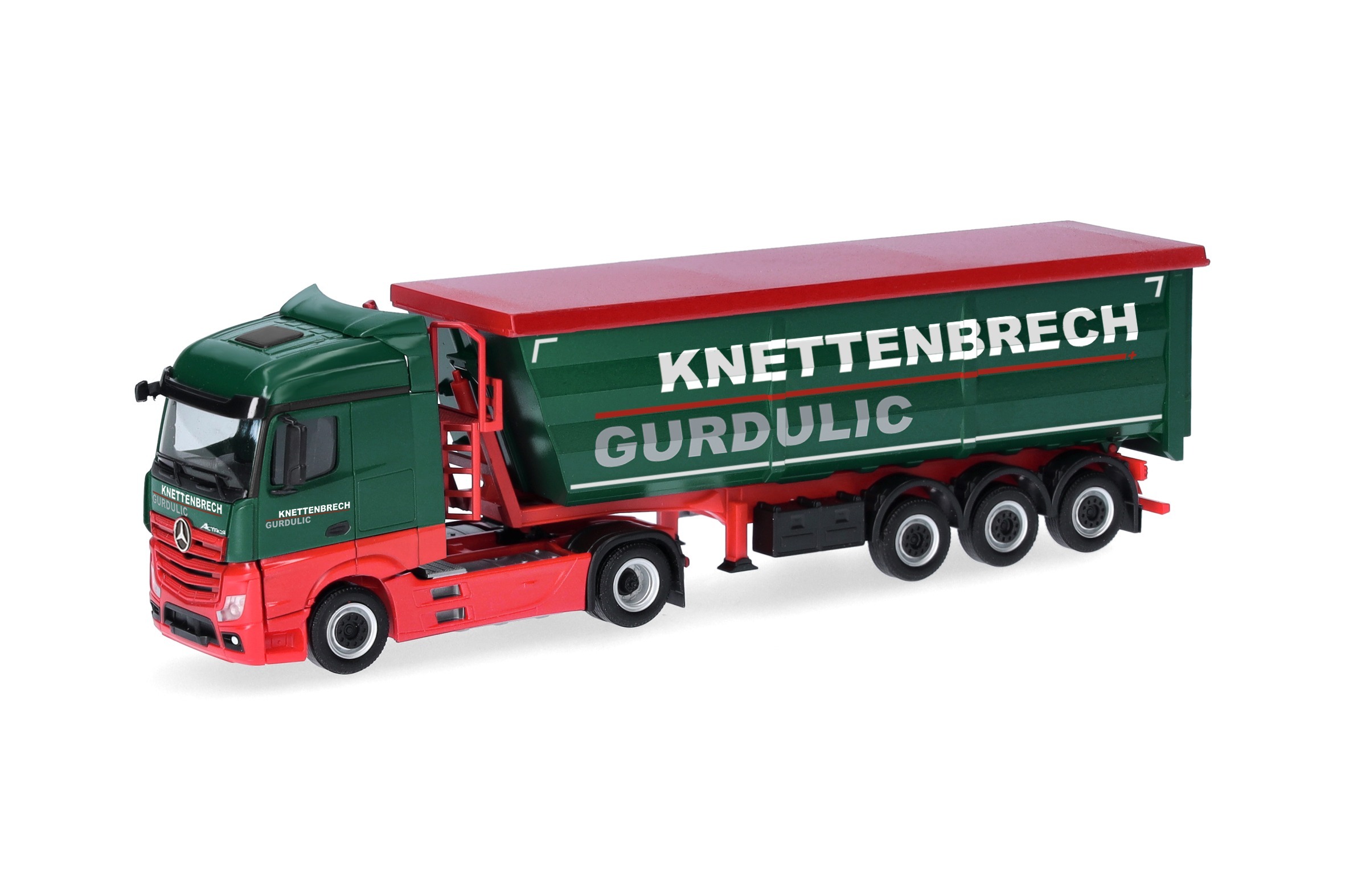 Bundesweit sind viele Fahrzeuge des Unternehmen Knettenbrech & Gurdulic im Bereich Entsorgung zu sehen, was für die Größe des Unternehmen spricht. Nachfolgend auf den Absetzkipper (318419) aus dem letzten Neuheitenblock, erscheint nun der Stahlmulden-Sattelzug mit Mercedes-Benz Actros Streamspace-Zugmaschine in einmaliger Auflage.