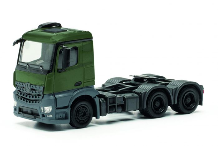 Diese Mercedes-Benz Arocs M Zugmaschine mit „normaler“ Stoßstange und Fahrerhausunterteil ist eine Ausstellungszugmaschine der Daimler Truck AG und wurde an der Logistikschule der Bundeswehr in Garlstedt als Muster für ein späteres Serienfahrzeug vorgestellt. Als neutrale Zugmaschine ergänzt sie den Military-Bereich von Herpa und wird länger im Sortiment bleiben.