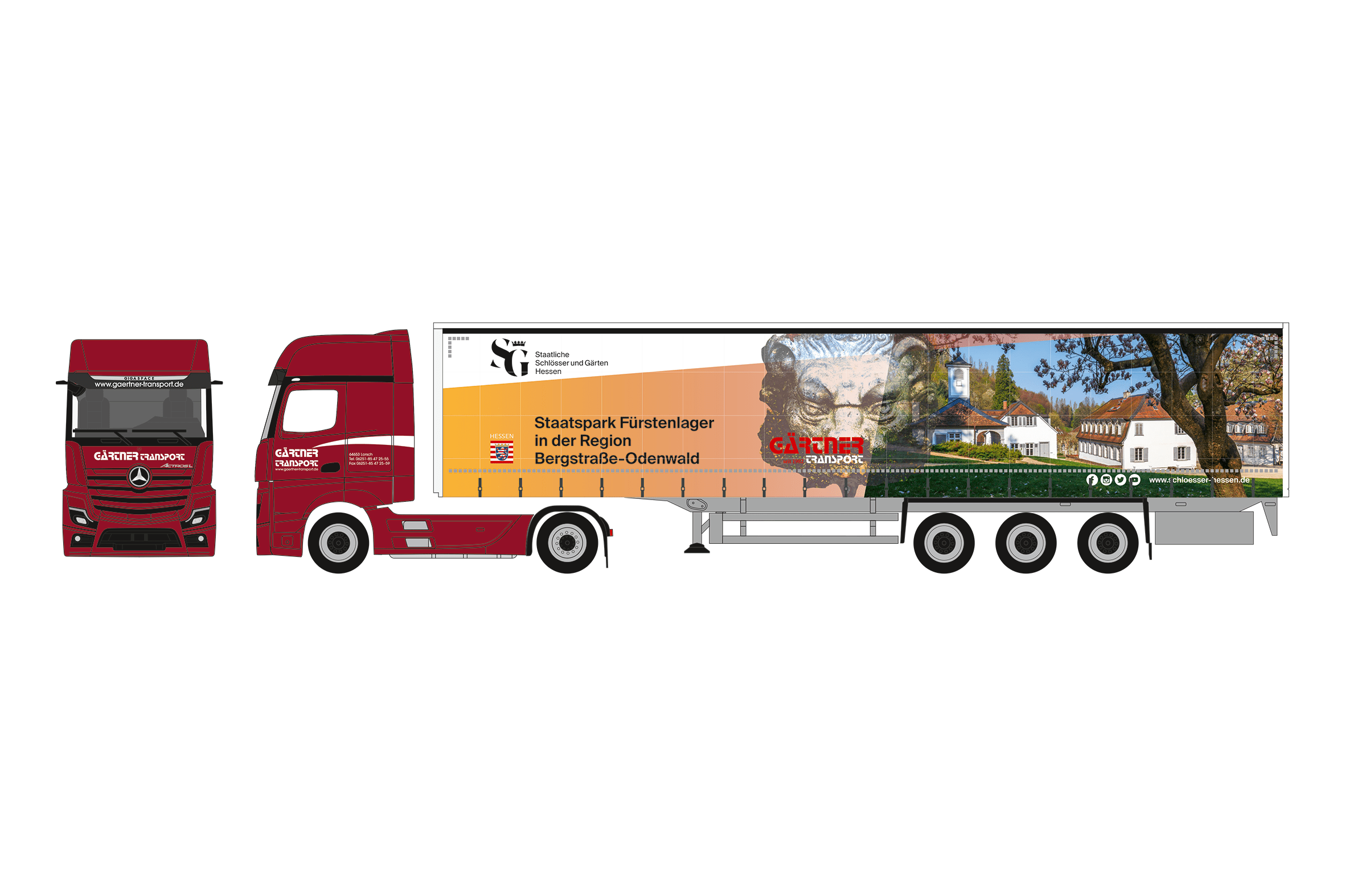 Vorbestellung herpa 939263 Mercedes-Benz Actros ’18 L Gigaspace Gardinenplanen-Sattelzug Gärtner Transporte/Staatspark Fürstenlager 1:87 NEU + OVP